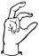 На ћирилици написано МАКСИМ КУРМАЗОВИЋ састоји се из 16 слова [?]. Исписано ћириличном једноручном азбуком за глувонеме: